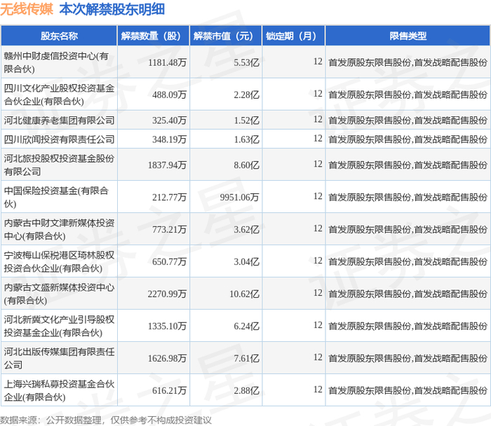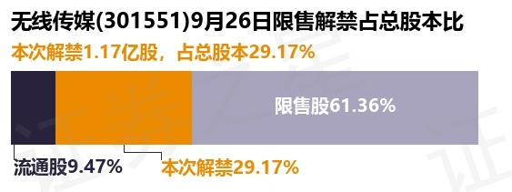 无线传媒(301551)1.17亿股限售股将于9月26日解禁,占总股本29.17%