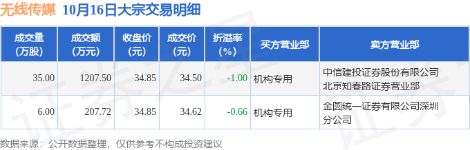 证券之星消息,10月16日无线传媒发生大宗交易,交易数据如下:
