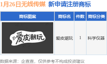 无线传媒新提交“爱皮潮玩”商标注册申请