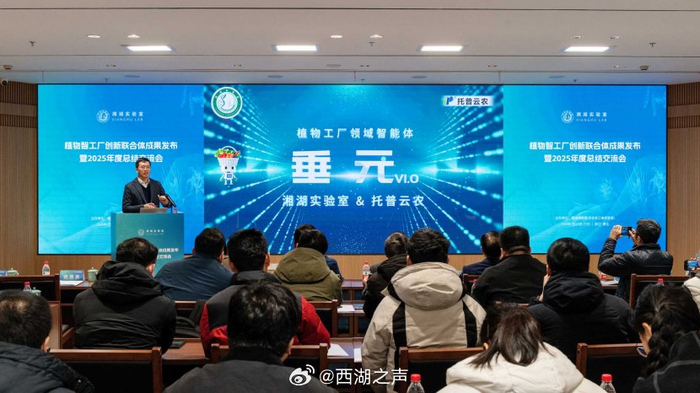 【#植物工厂首个专属智能体“垂元”发布#】1月23日,植物智工厂创新联合体成果发布暨2025年度总结交流会在湘湖实验室召开。会上,湘湖实验室与浙江托普云农科技股份有限公司联合发布了植物工厂领域首个专属智能体——“垂元”。