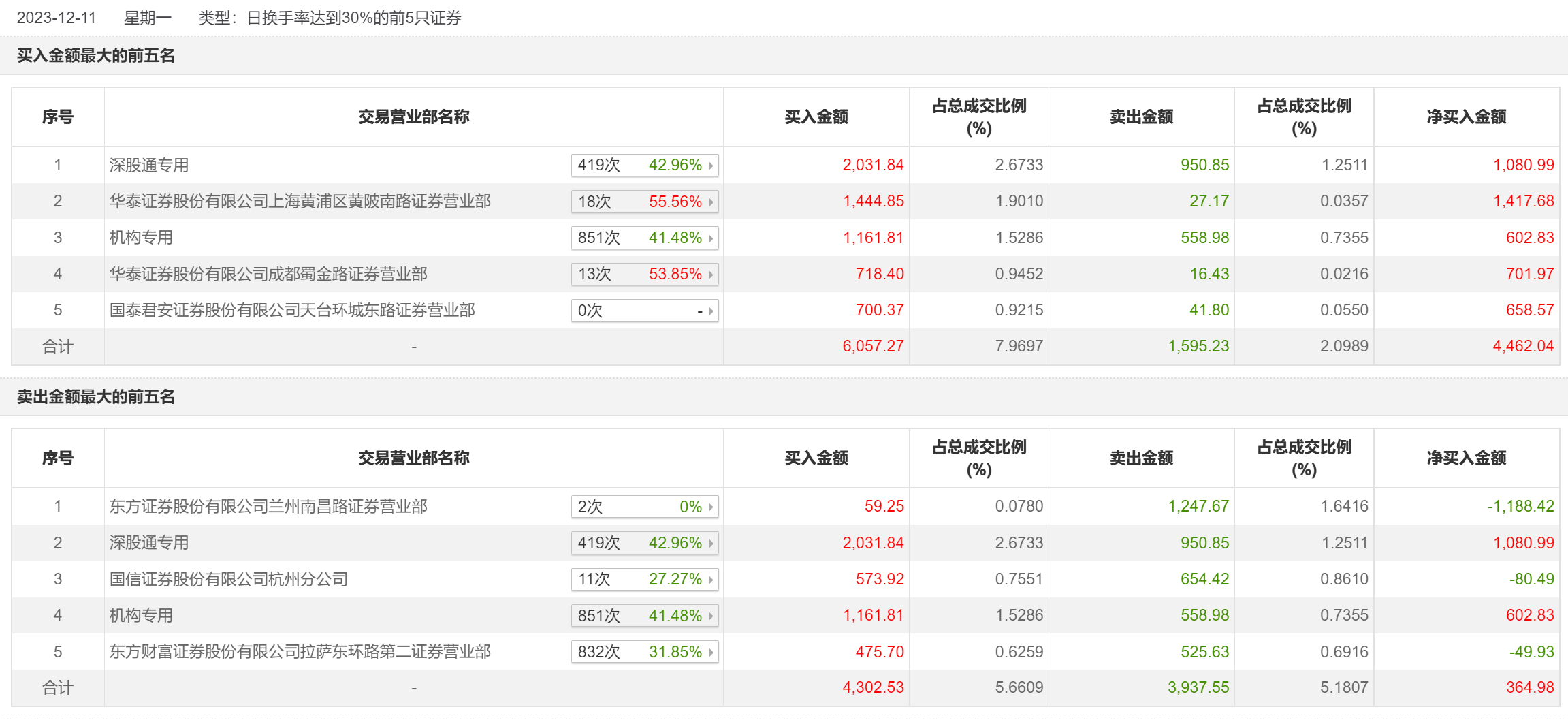 12月11日,三态股份今日涨8.6%,全天换手率达44.14%,振幅达14.63%。龙虎榜数据显示,营业部席位合计净买入3143.2万元。其中,机构买入1161.81万元,卖出558.98万元,合计净买入602.83万元。此外,深股通专用、华泰证券上海黄浦区黄陂南路证券营业部分别买入2031.84万元、1444.85万元;东方证券兰州南昌路证券营业部、深股通专用分别卖出1247.67万元、950.85万元。