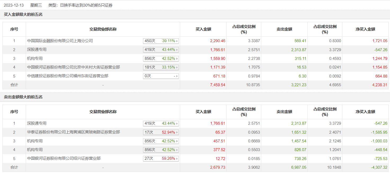 具体来看,机构买入2394.94万元,卖出2598.72万元,合计净卖出203.78万元。此外,知名游资现身龙虎榜,赵老哥(中国银河证券股份有限公司绍兴证券营业部)净卖出725.53万元。此外,中国国际金融上海分公司、深股通专用分别买入2290.46万元、1766.61万元;深股通专用、华泰证券上海黄浦区黄陂南路证券营业部分别卖出2313.87万元、1651.32万元。