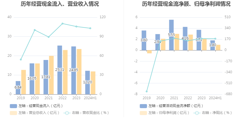 2024年上半年,公司营业收入现金比为102.90%,净现比为179.34%。
