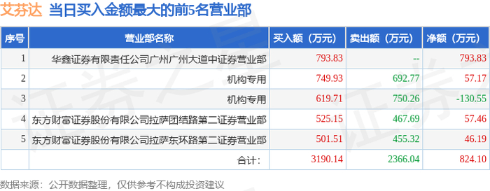 证券之星消息,沪深交易所2025年10月23日公布的交易公开信息显示,艾芬达(301575)因日换手率达到30%的前5只证券登上龙虎榜。此次是近5个交易日内第1次上榜。