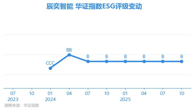 日前,华证指数公布了新一期(2025年10月31日)的ESG评级结果,辰奕智能(301578.SZ)获得B评级(华证指数评级为C起至AAA九档,C为最低档,AAA为其最高一级评级/AA为其第二档),上一期(2025年7月31日)ESG评级为B。本期ESG评级在531家电子设备、仪器和元件行业A股上市公司中排名第351(上一期排名第357)。