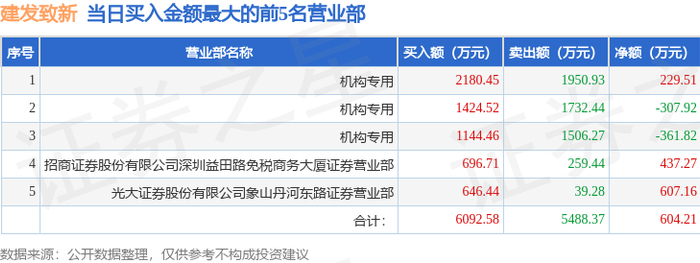 11月4日建发致新(301584)龙虎榜数据:机构净卖出1295.62万元
