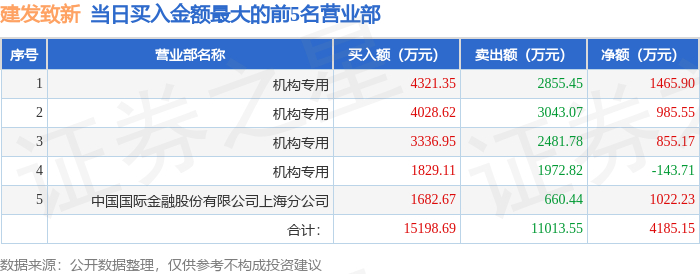 11月13日建发致新(301584)龙虎榜数据:机构净买入3162.92万元