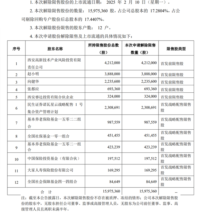 在上述高送分红、频频回购出台后,诺瓦星云的减持也接踵而至。2025年2月5日,诺瓦星云公告,公司将有1598万股于2月10日解除限售上市流通,该部分股份占公司总股本的17.28%,占公司剔除回购专户股份总股本的17.44%。