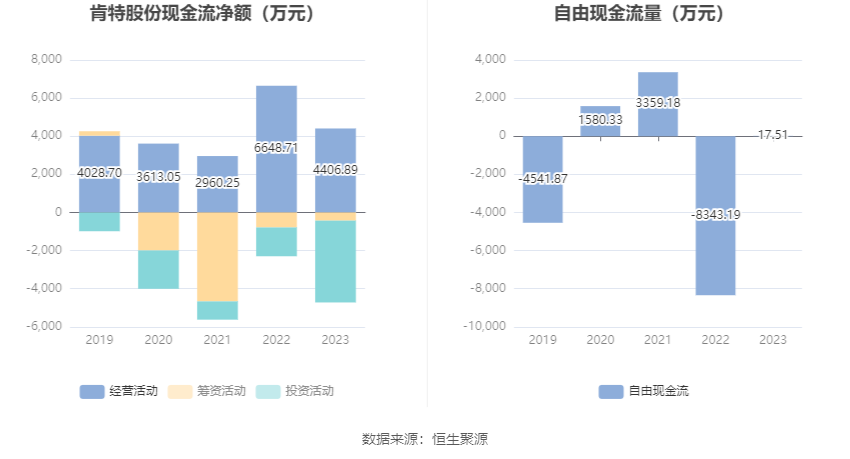 进一步统计发现,2023年公司自由现金流为17.51万元,上年同期为-8343.19万元。