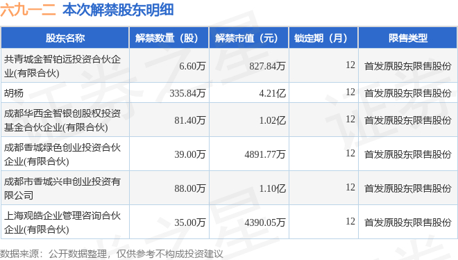 六九一二(301592)585.84万股限售股将于10月24日解禁,占总股本8.37%