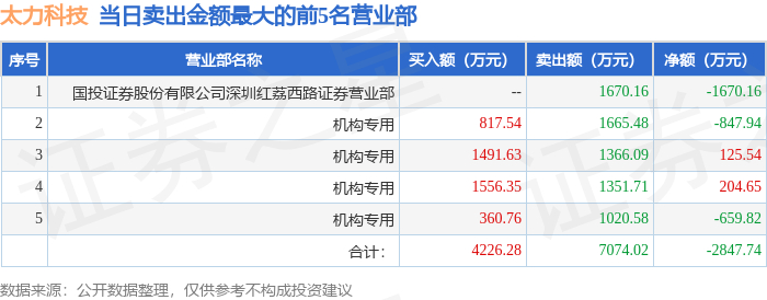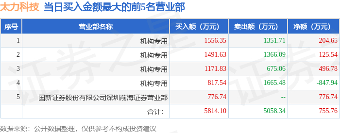 1月5日太力科技(301595)龙虎榜数据:机构净卖出680.8万元
