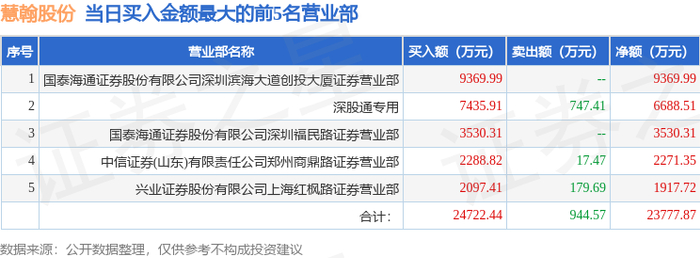 9月11日慧翰股份(301600)龙虎榜数据:北向资金净买入6688.51万元
