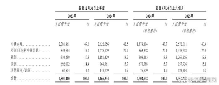 绿联科技2023年至2025年前三季度各地区收入情况