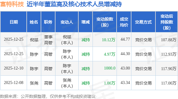富特科技:12月25日高管倪斌、陈宇减持股份合计15.09万股