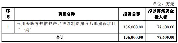 中国经济网北京10月29日讯 苏州天脉(301626.SZ)近日披露的向不特定对象发行可转换公司债券预案显示,公司本次向不特定对象发行可转换公司债券募集资金总额预计不超过78,600.00万元(含本数),扣除发行费用后的募集资金净额拟投资于以下项目:苏州天脉导热散热产品智能制造甪直基地建设项目(一期)。