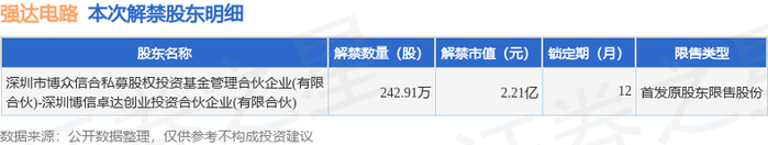 强达电路(301628)242.91万股限售股将于11月4日解禁,占总股本3.22%