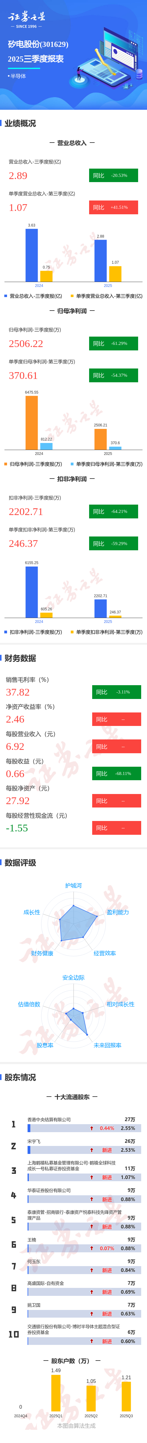 图解矽电股份三季报:第三季度单季净利润同比下降54.37%