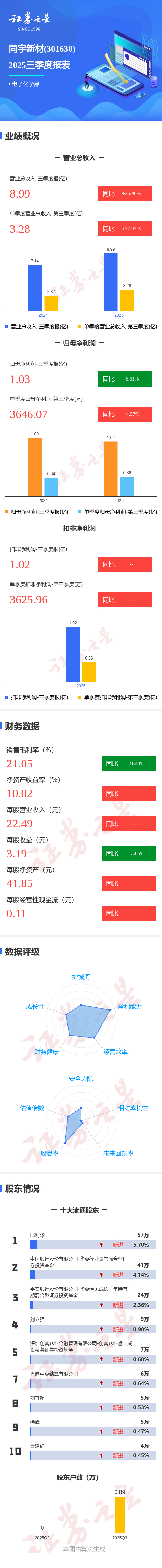 图解同宇新材三季报:第三季度单季净利润同比增长4.58%