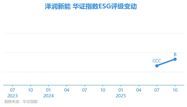 日前,华证指数公布了新一期(2025年10月31日)的ESG评级结果,泽润新能(301636.SZ)获得B评级(华证指数评级为C起至AAA九档,C为最低档,AAA为其最高一级评级/AA为其第二档),上一期(2025年7月31日)ESG评级为CCC。本期ESG评级在531家电子设备、仪器和元件行业A股上市公司中排名第403(上一期排名第404)。