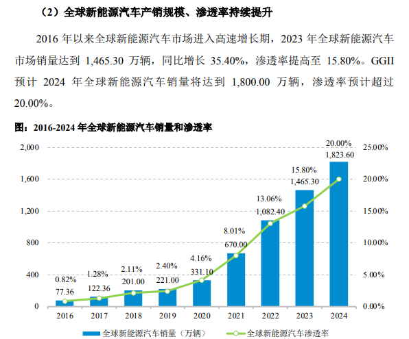 权威数据显示,2021年至2024年,全球新能源汽车销量从670万台增长至1823.6万台,复合增长率大约为39.6%。其中,国内市场增速更高,2021年销售为352.1万辆,2024年达到1286.6万辆,复合增长率大约为53.3%。
