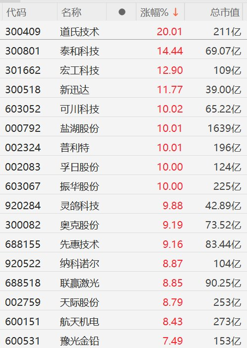格隆汇1月5日|A股市场锂电池概念股午后涨幅进一步扩大,其中,道氏技术20CM涨停,泰和科技涨超14%,宏工科技涨超12%,新迅达涨超11%,可川科技、盐湖股份、普利特、孚日股份、振华股份10CM涨停,灵鸽科技、奥克股份、先惠技术涨超9%,纳科诺尔、联赢激光、天际股份、航天机电涨超8%。消息面上,碳酸锂主力合约日内涨幅扩大至6%。