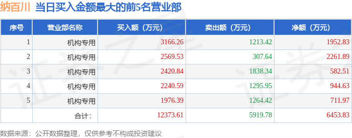 从龙虎榜公布的当日买卖数据来看,机构合计净买入6453.83万元。