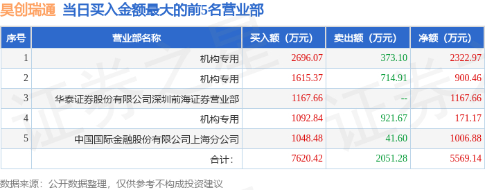 10月13日昊创瑞通(301668)龙虎榜数据:机构净买入1458.89万元