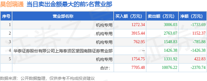10月22日昊创瑞通(301668)龙虎榜数据:机构净卖出944.37万元