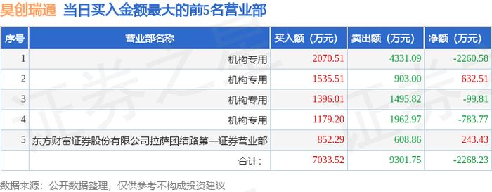 10月23日昊创瑞通(301668)龙虎榜数据:机构净卖出2511.66万元