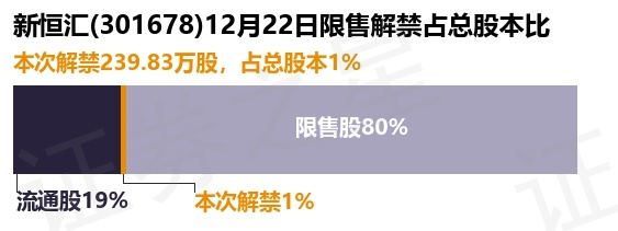 新恒汇(301678)239.83万股限售股将于12月22日解禁,占总股本1%
