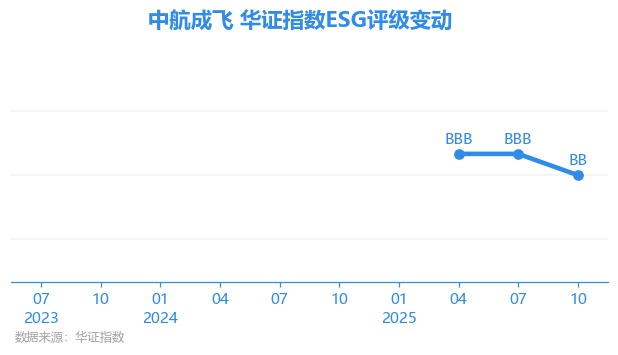 日前,华证指数公布了新一期(2025年10月31日)的ESG评级结果,中航成飞(302132.SZ)获得BB评级(华证指数评级为C起至AAA九档,C为最低档,AAA为其最高一级评级/AA为其第二档),上一期(2025年7月31日)ESG评级为BBB。本期ESG评级在531家电子设备、仪器和元件行业A股上市公司中排名第180(上一期排名第138)。