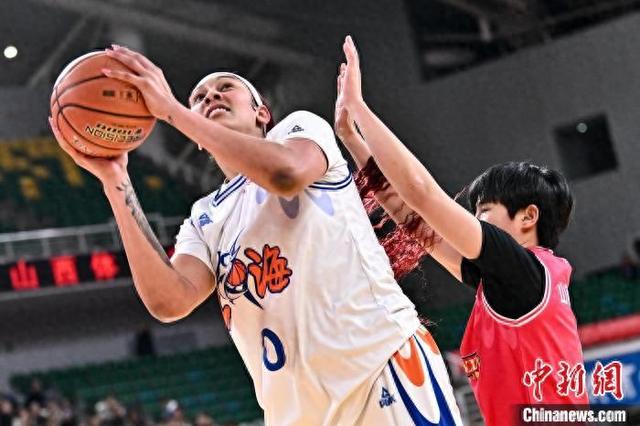 12月27日,上海浦发银行队球员卡多佐(白)在比赛中上篮。当日,在太原进行的2024-2025赛季中国女子篮球联赛(WCBA)常规赛第16轮比赛中,山西竹叶青酒队主场62比79不敌上海浦发银行队。中新社记者 韦亮 摄