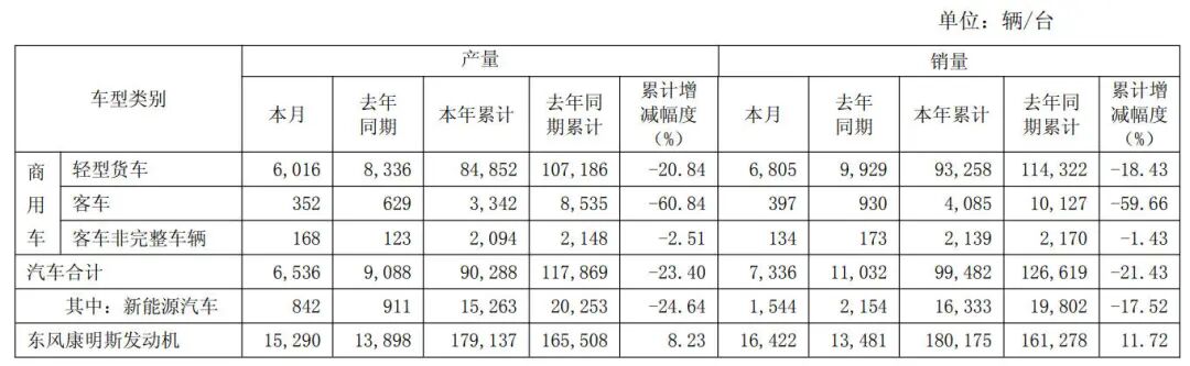 东风股份,产销双降