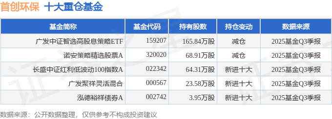 持有首创环保最多的基金为广发中证智选高股息策略ETF,目前规模为2.15亿元,最新净值1.1473(10月31日),较上一交易日上涨0.13%。该基金现任基金经理为吕鑫。