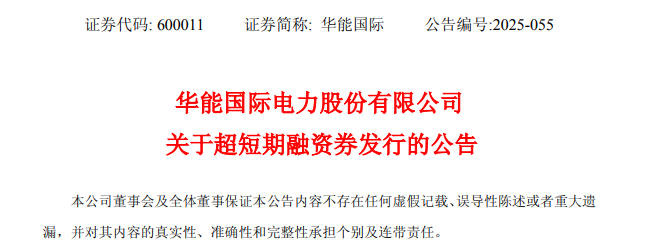 10月16日,华能国际电力股份有限公司(600011.SH,以下简称“华能国际”)发布了关于超短期融资券发行的公告。