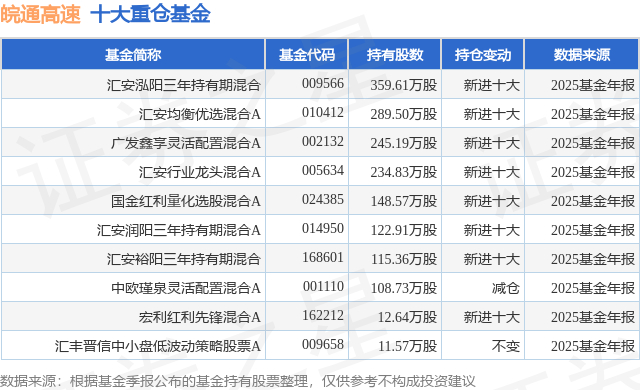 重仓皖通高速的前十大公募基金请见下表: