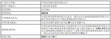 证券简称:民生银行 A股代码:600016 优先股简称:民生优1 优先股代码:360037 编号:2024-024