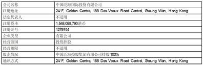 中国泛海控股集团有限公司直接控股中国泛海国际投资有限公司,中国泛海控股集团有限公司间接控股泛海国际股权投资有限公司、隆亨资本有限公司。