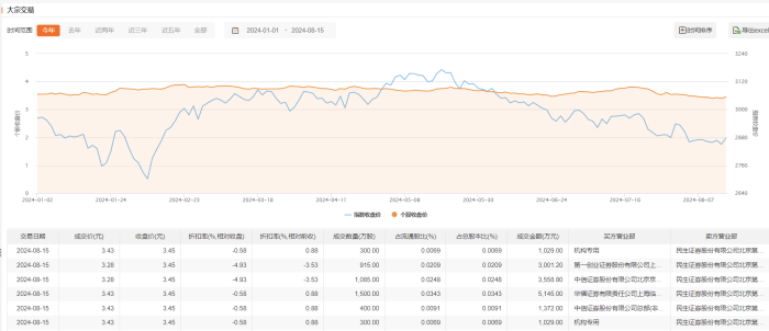 民生银行今日大宗交易成交4500万股,成交额1.51亿元