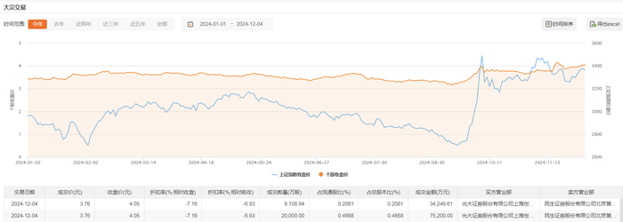 今日大宗交易成交2.91亿股,成交额10.94亿元,占当日总成交额的52.35%,成交价3.76元,较市场收盘价折价7.16%。