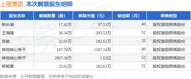上港集团(600018)3214.06万股限售股将于11月13日解禁,占总股本0.14%