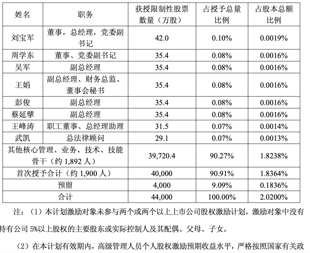 本计划涉及的首次激励对象不超过1,900人,具体包括:董事、高级管理人员、关键岗位中层管理人员、核心技术、业务、技能等骨干人员。所有激励对象必须与公司或公司的子公司具有劳动、 聘用关系且在公司担任职务, 或由公司派出任职。