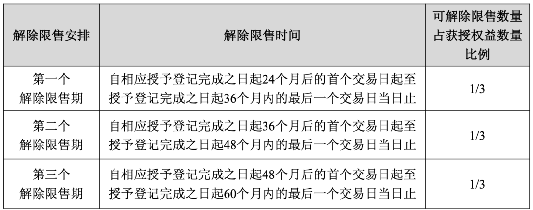 解除限售期及解除限售安排: