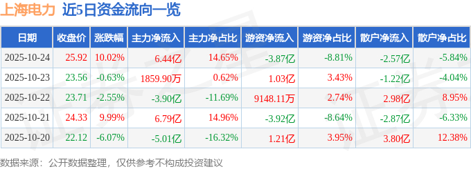 10月24日上海电力(600021)涨停分析:新能源增长、低成本融资、业绩驱动