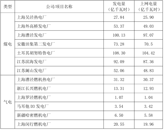 上海电力所属主要发电项目2025年度发电量数据如下: