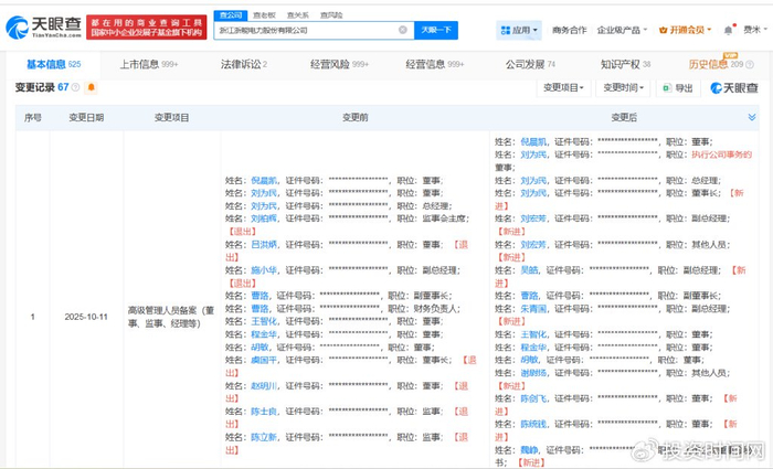 天眼查App显示,近日,浙能电力(600023)发生工商变更,虞国平卸任法定代表人、董事长,由刘为民接任。
