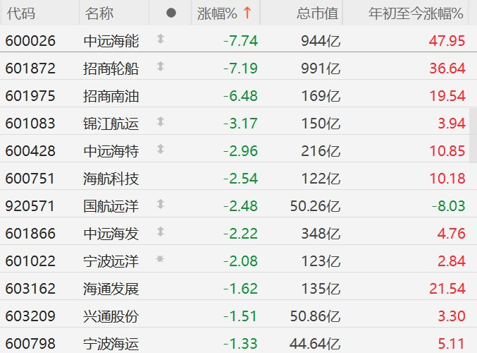 A股航运股集体下跌,中远海能、招商轮船跌超7%