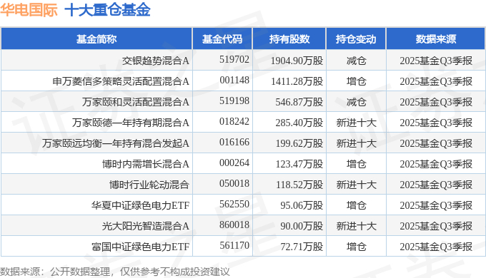 持有华电国际最多的基金为交银趋势混合A,目前规模为31.93亿元,最新净值5.1005(10月29日),较上一交易日上涨0.77%,近一年上涨21.13%。该基金现任基金经理为杨金金。