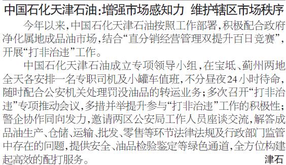 中国石化天津石油:增强市场感知力 维护辖区市场秩序