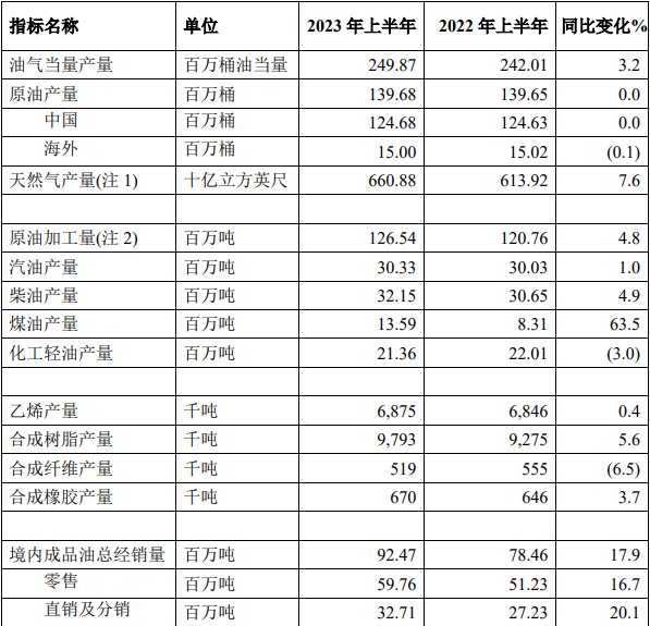 中国石化:上半年原油产量1.4亿桶,同比去年持平